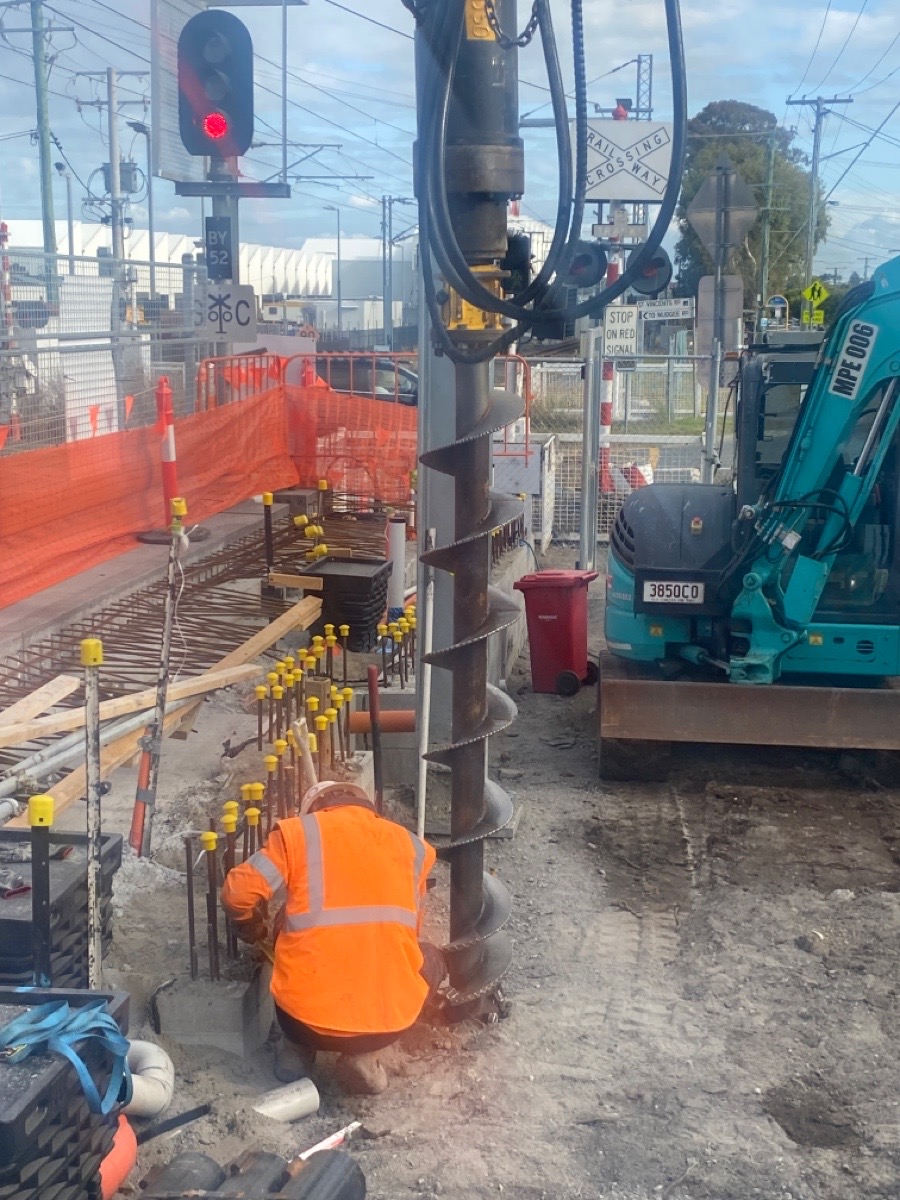 The project was carried out under tight access conditions within an active rail corridor, where working platforms were restricted to widths as narrow as 3.5 metres. These spatial constraints required meticulous planning, compact equipment selection, and precise coordination to safely execute piling and construction activities without disrupting rail operations. Our team's experience in confined environments enabled efficient workflow, maintaining safety and productivity within the limited footprint available.
